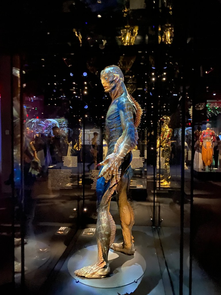 Proceeding through the hallway, there is a sudden change. While the animation section had a light and cheerful theme to it, the next room has a severe contrasting dark tone. It were as if you had just stepped into a movie theater. Here, there are many iconic characters like Edward Scissorhands, R2D2, and the monster from The Shape of Water, all trapped in glass cages, as if they were stuck in time.