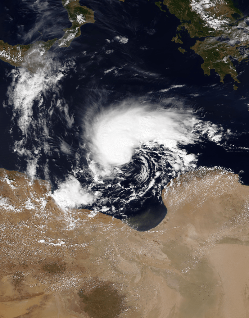 In Libya, due to lack of investment in infrastructure and preparation, 2,500 people died. Heavy rainfall caused a dam to break, leading to a huge flood. Ten thousand people were initially thought missing, according to the International Federation of the Red Cross and Red Crescent Societies. The Libyan town of Derna was the main city affected by this event; nearly a quarter of the city was washed away. In Greece, this tropical storm was almost a relief to the land burned by a period of unusual heat and spontaneous wildfires.